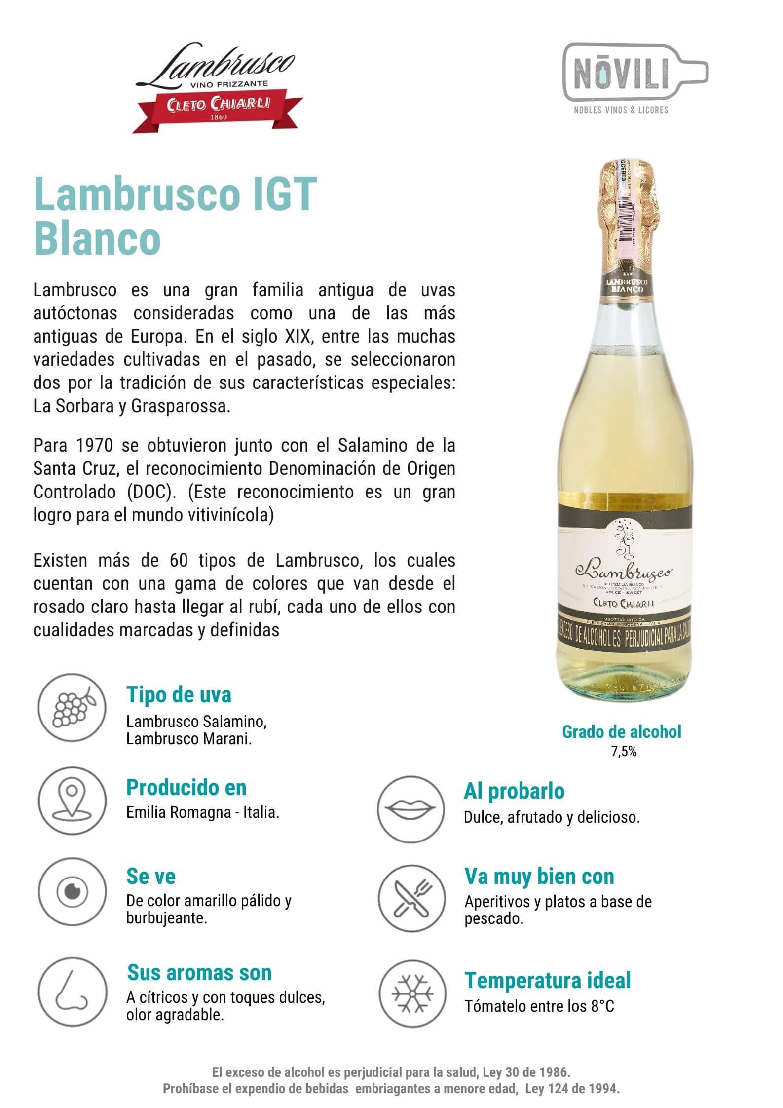 Momentos Nóvili para tu Lambrusco Cleto Chiarli IGT Blanco