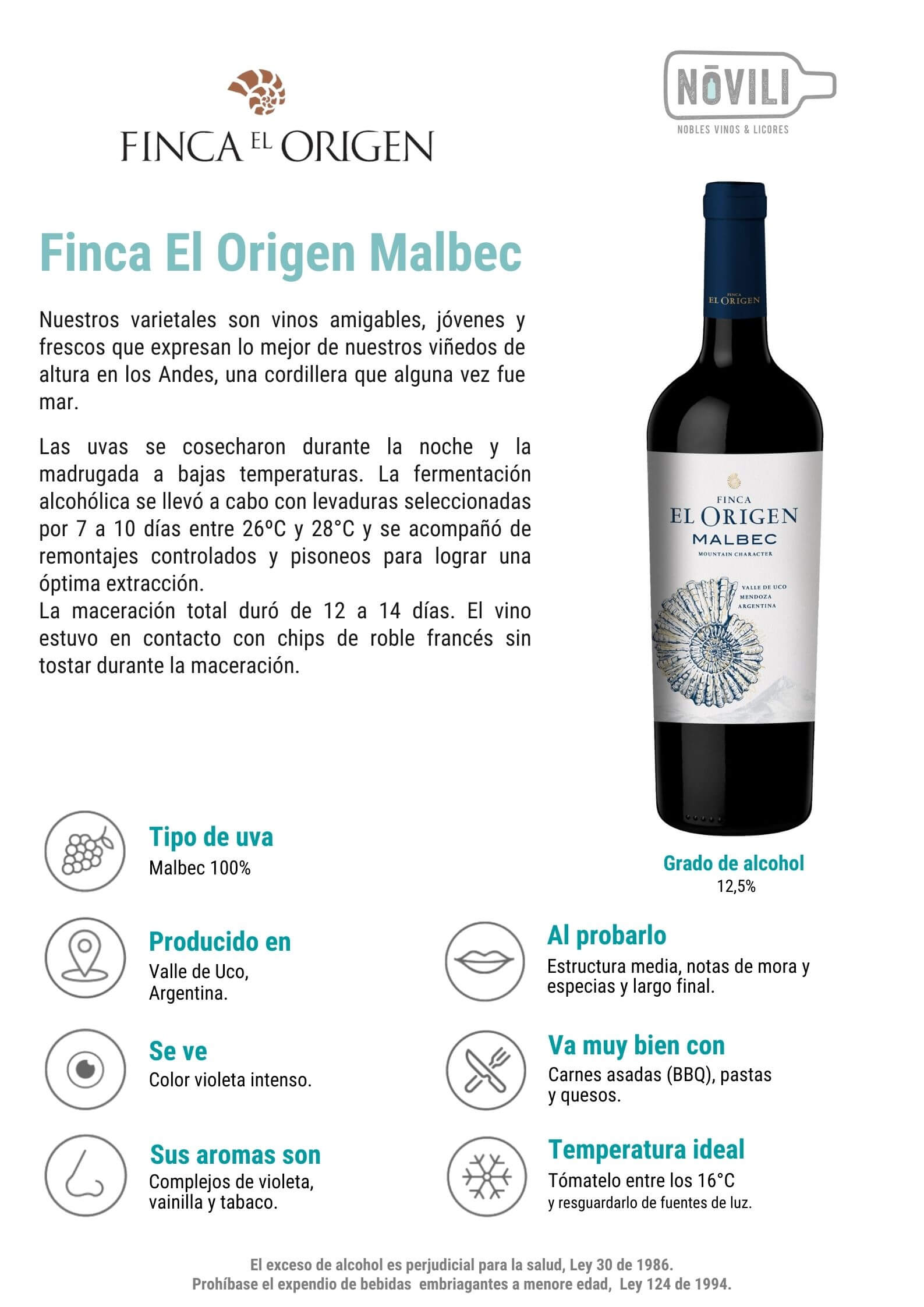 - Tipo de uva: 85% Malbec, 10% Cabernet Sauvignon y 5% Syrah