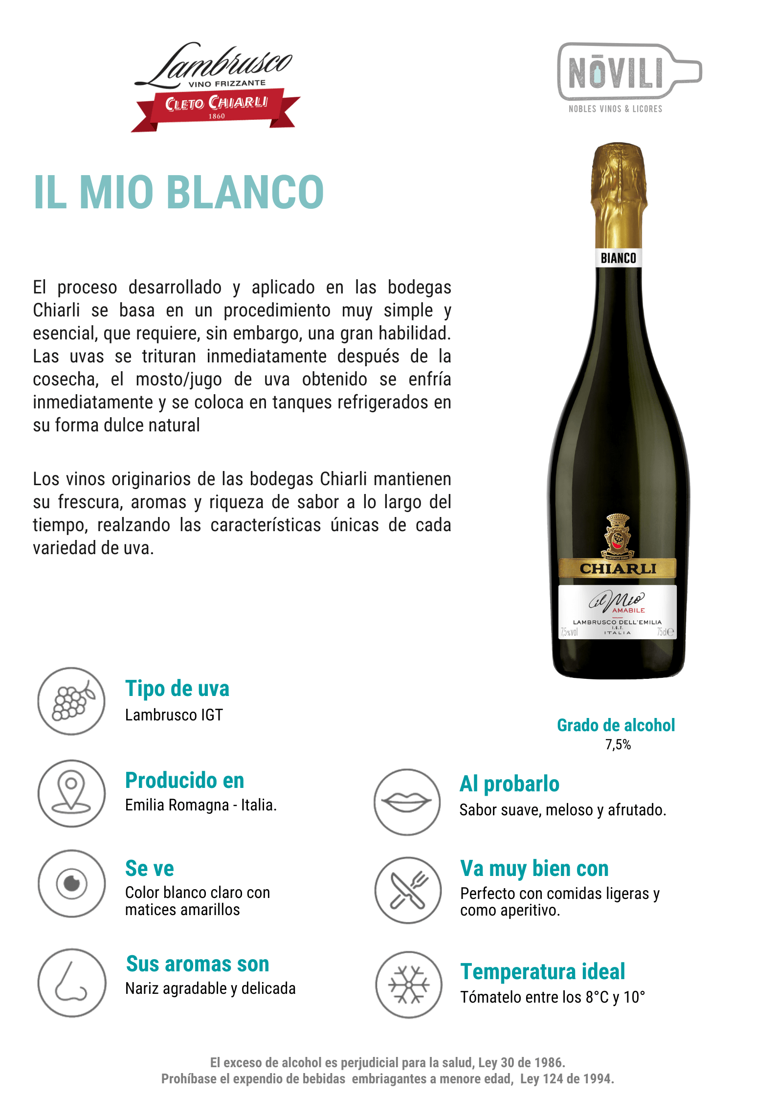 Momentos Nóvili para tu Lambrusco Il Mio Chiarli Blanco