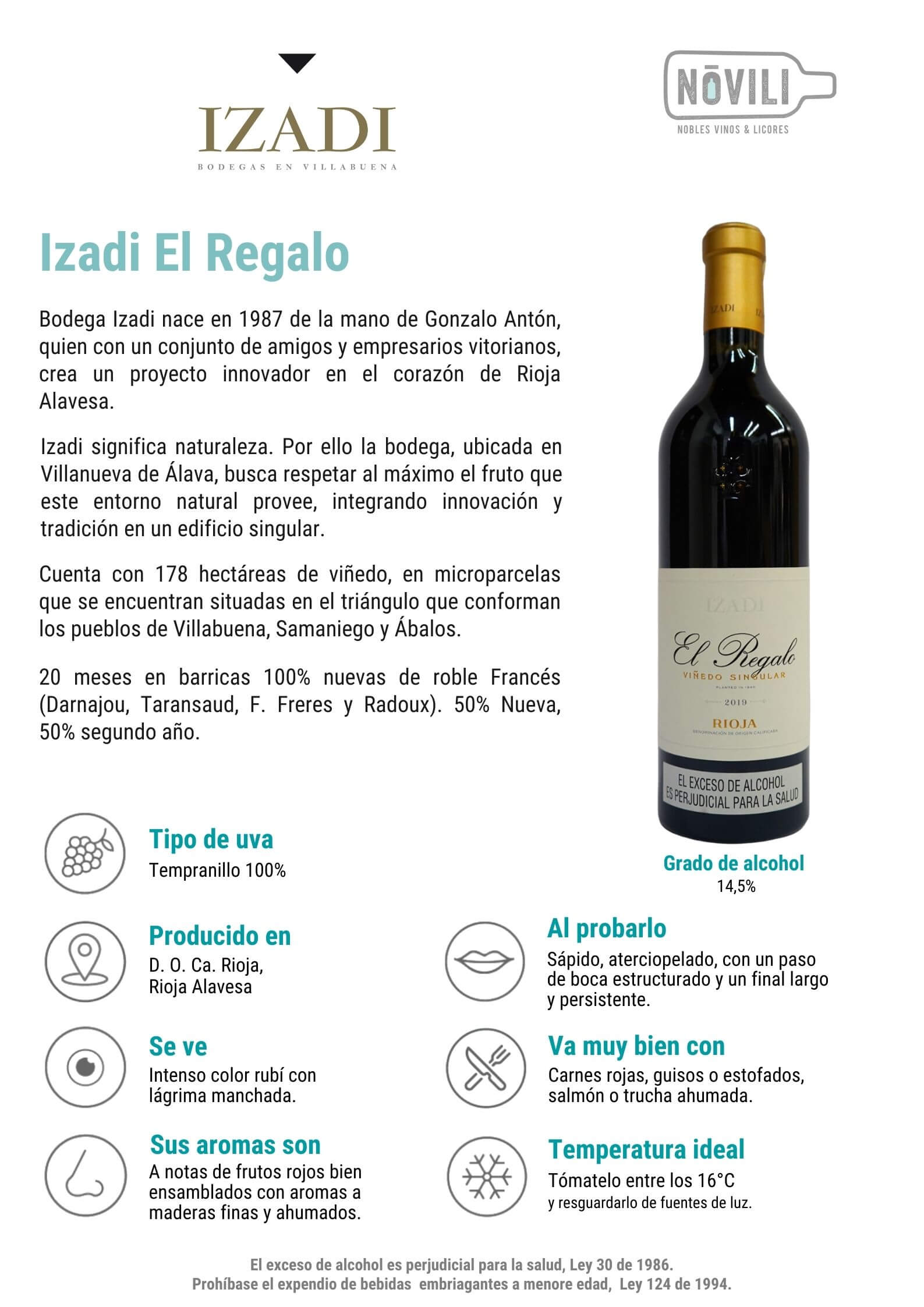 Porque puedes encontrar en el, un vino moderno, sabroso, aterciopelado y complejo, que está elaborado a partir de una selección de las mejores parcelas de la bodega Izadi.