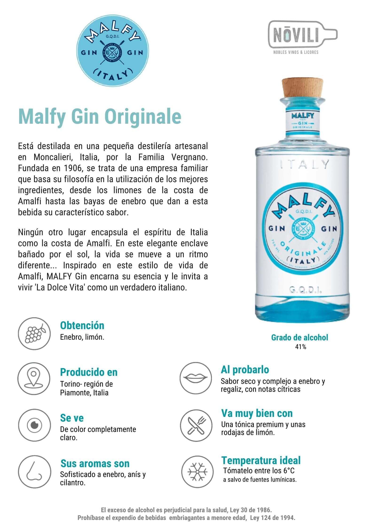 - 50 ml. de Malfy Gin Original150ml de agua saborizada o soda