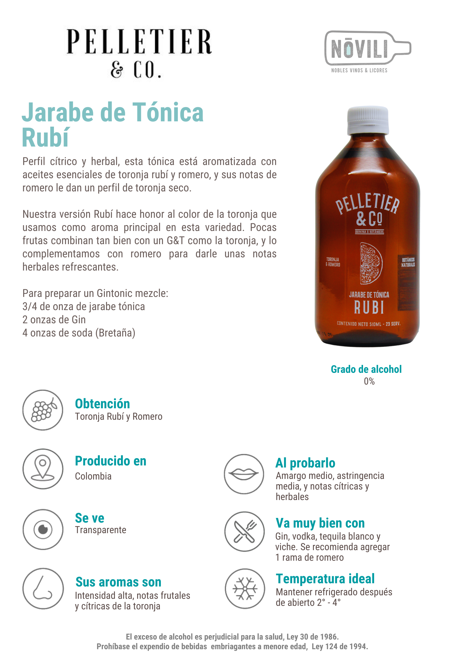 Pelletier revive el origen de la tónica utilizando productos colombianos, 100% naturales (sin conservantes, colorantes, ni aditivos), y lo mejor, con sabores que harán volar tu creatividad. Su botánico principal es la toronja, lo que hace que sea un perfecto complemento para cualquier Ginebra.